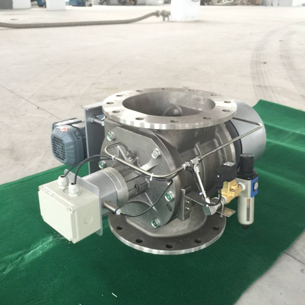 不銹鋼關(guān)風(fēng)器是用于安裝在正壓或者負壓下工作的沙克龍下端,上部接受卸料器排出的物料,通過旋轉(zhuǎn)的葉輪轉(zhuǎn)子起著輸送物料的作用,又擔(dān)負著密封的作用,防止氣力輸送過程中從排料口進入空氣,保證卸料器的正常卸料。